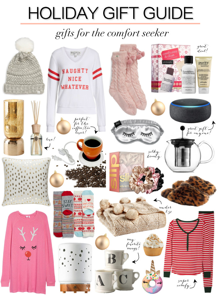 Anyways, my first gift guide for the season is for the comfort seeker. This guide is perfect for anyone that you know who is a homebody or loves feeling cozy. I just ordered this pom pom blanket for a gift for a new homeowner and this coffee/tea warmer for myself. And these monogram mugs are my go-to gifts every single year. I just pop a Starbucks gift card inside or some Hershey's kisses and I'm all set. Needless to say, I think all of these ideas would make a fabulous gift for any lady in your life. Check out the post below and let me know what are some of your favorite comfy items that you can't live without!